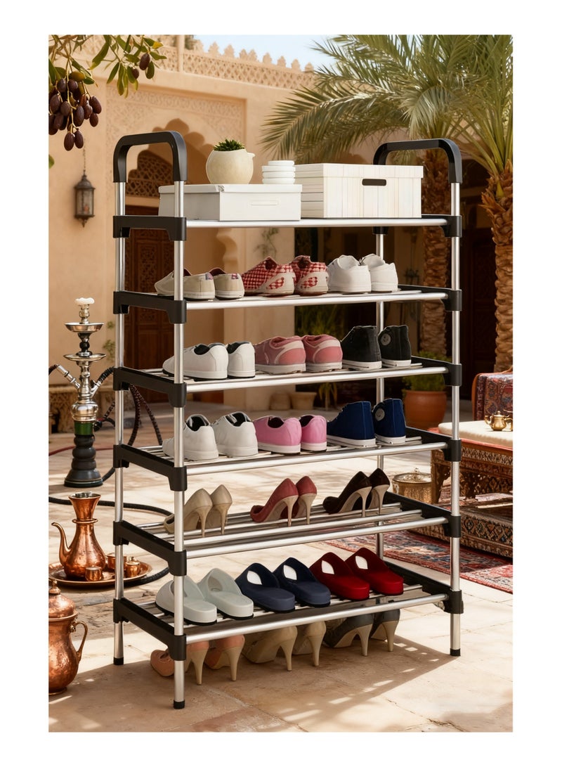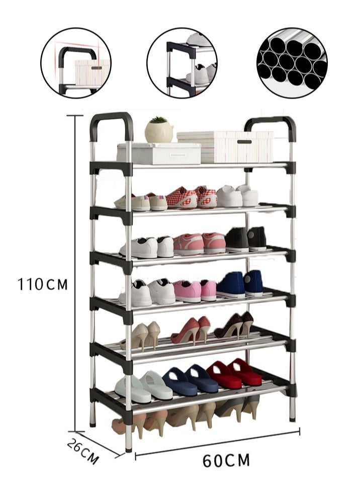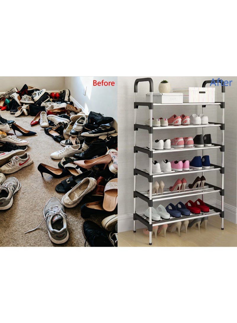 【Large space】The size of shoe rack is 60x26x110cm, with 6 layers, can put 18 pairs of shoes (depending on the size of the shoes). You can not only put on shoes, but also toys, clothes, etc