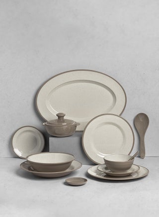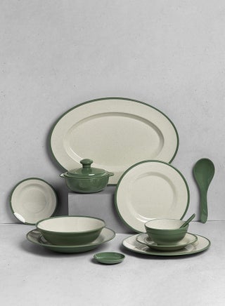 | Set Includes | Dinner Set content: 6 10" flat serving plates | 6 8.5" flat serving plates | 6 10" deep serving plates | 6 7" deep serving plates | 6 6" deep serving plates | 6 5.5" deep rice bowls | 6 soup spoons | 6 soup sauce plates | 6 9cm frosted soup bowls with 16 inch lid | 1 16" oval serving plate | 1 staple bowl ( Bowl) 8" | Serving Spoon |
