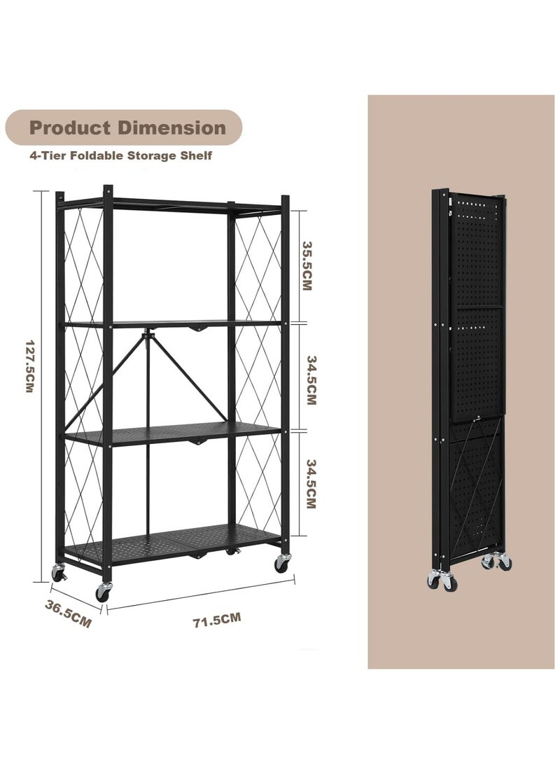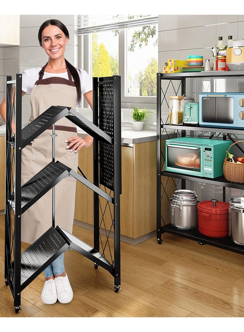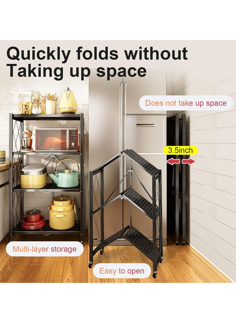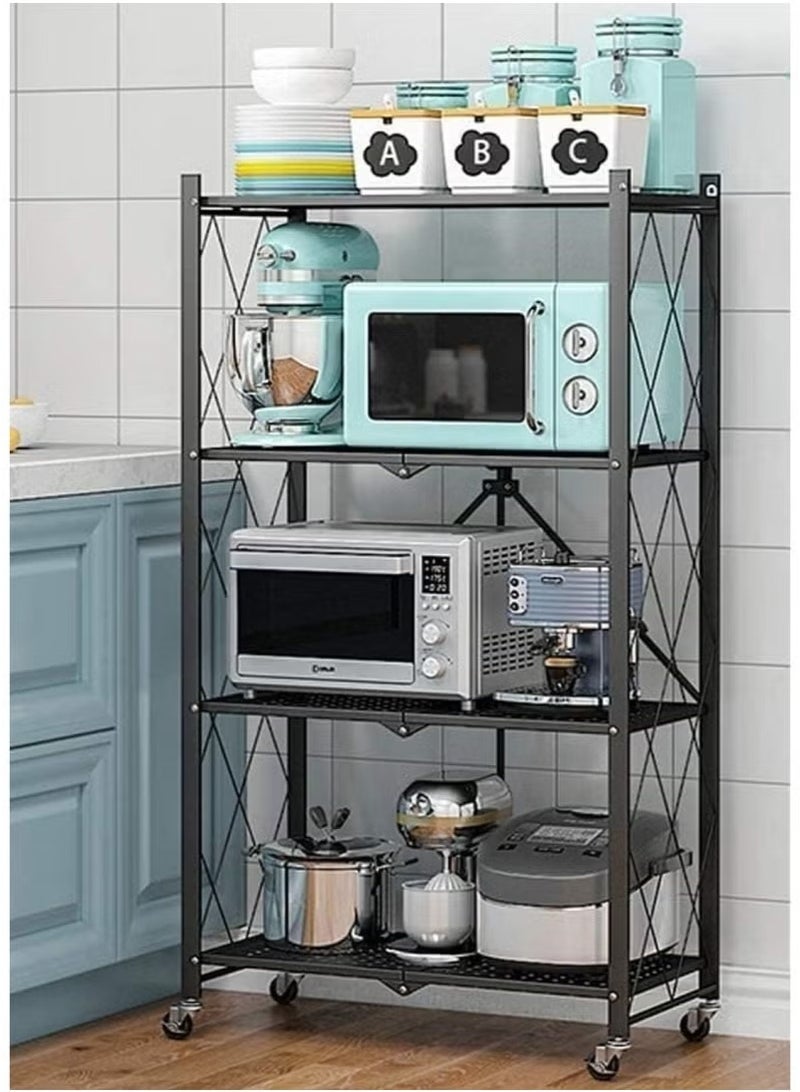 KITCHEN ORGANIZER WITH 4 FOLDABLE SHELVES, IRON FRAME AND WHEELS: Perfect for your kitchen space