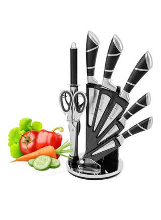 Set 9-Pieces Kitchen Knife,Chef Knives Block Set, Stainless Steel Knife Set for Cutting Slicing Dicing Chopping Silver