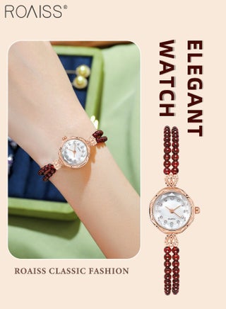 【Fashion Design】- The watch adopts a natural freshwater pearl strap and a stainless steel bracelet, with a rose gold case, showing a stylish and elegant style. It can also be used as a good decoration, suitable for a variety of outfits.