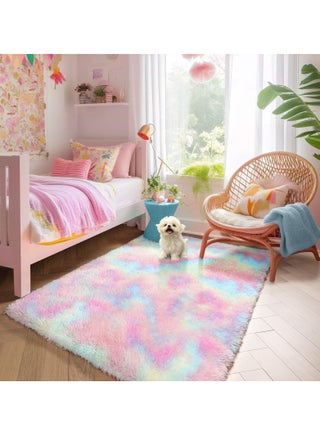 Upgraded Design: The tie dye rugs adopt a modern design concept and simple style with high quality pile surfaces, no shedding, no fading and no odor, upgrading the living space of your children and pets. The technical process of edge-locking of the big fluffy rugs ensures that the edge of the bed room rugs is not easy to fall off. The regular distribution of anti-slip rubber particles on the back firmly fits the floor and prevents the black shaggy rugs from moving