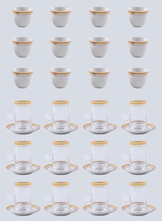 | What's In The Box | 12pcs new bone china cawa cups 80ml, 12pcs new bone china saucers 4.25 inch, 12pcs glass tea cups 120ml. |