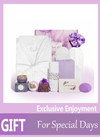 | Set Includes | Package Includes: 1X Bathrobe 1X Face Towel 1X Lavender Bath Ball 1X Lavender Scented Candle 1X Purple Hairband 1X Pair of White Slippers 1X Facial Brush 1X Lavender Sachet 1X Kessa Exfoliating Body Glove 1X You Are Loved Card |