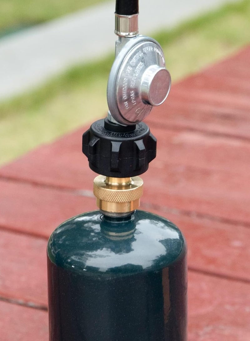 This solid brass adapter allows you to easily refill disposable 1lb propane cylinders from a larger 20lb tank, making it a convenient and cost-effective solution. Simply attach the adapter to your 20lb tank and connect the 1lb bottle to fill it up. The knurled grip and precision threads ensure a secure fit, while the durable brass construction ensures long-lasting performance. With this adapter, you can save money by refilling smaller bottles instead of constantly purchasing new ones. Ideal for camping stoves, outdoor grills, and other propane-powered appliances that require 1lb cylinders.