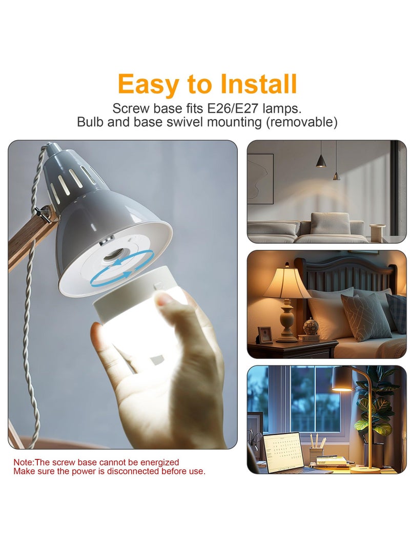 Rechargeable Battery Operated Light Bulbs, 300LM E26 Screw in (Magnetic Detachable) Light Bulb for Lamps with Remote Control Dimmable&Timer, Wireless Puck Emergency Lamp for Non-Hardwired Wall Sconce