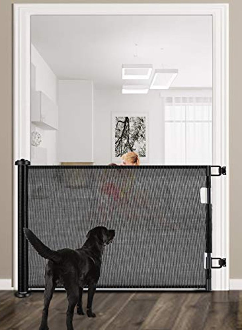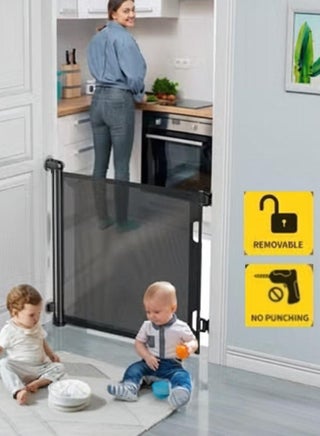 Enhanced Safety Features and Durable Structure - Our Retractable Baby Gate is made of strong and soft mesh, providing a safe environment for your baby to explore without the risk of injury from accidental bumps or falls. The childproof locking mechanism ensures that the gate stays securely in place, making it a worry-free solution for parents. All parts of the gate are non-toxic and odorless, ensuring your child's safety and health. Easy One-Handed Operation our retractable gate features a simple two-step operation that can be easily done with one hand, allowing you to hold your child while opening or closing the gate. Push, twist, and release the button to unlock the gate, then pull the handle to extend it to the desired length. When released, the gate automatically locks in place, providing quick and efficient protection for your child. Reliable Protection for Children and Pets designed for infants and toddlers aged 6-24 months, our sturdy mesh gate effectively blocks your child and small or medium-sized dogs from hazardous stairs and restricted areas. It provides reliable protection for your little ones and furry friends, allowing you to focus on other important things without worrying about their safety. Versatile Indoor/Outdoor Safety Solution our retractable baby gate can be easily adjusted to fit any door or stairway, making it a versatile safety solution for your home. It is perfect for use in high-traffic areas, such as doorways, hallways, patios, decks, and banisters, both indoors and outdoors. Unlike traditional walk-through metal gates, our mesh gate eliminates the risk of tripping on metal bars. Because of different camera lens and light environments, the real item color which you receive maybe little vary from the listing picture. Sincerely hope that you can understand. The size of the product is manually measured. Due to different measuring methods.