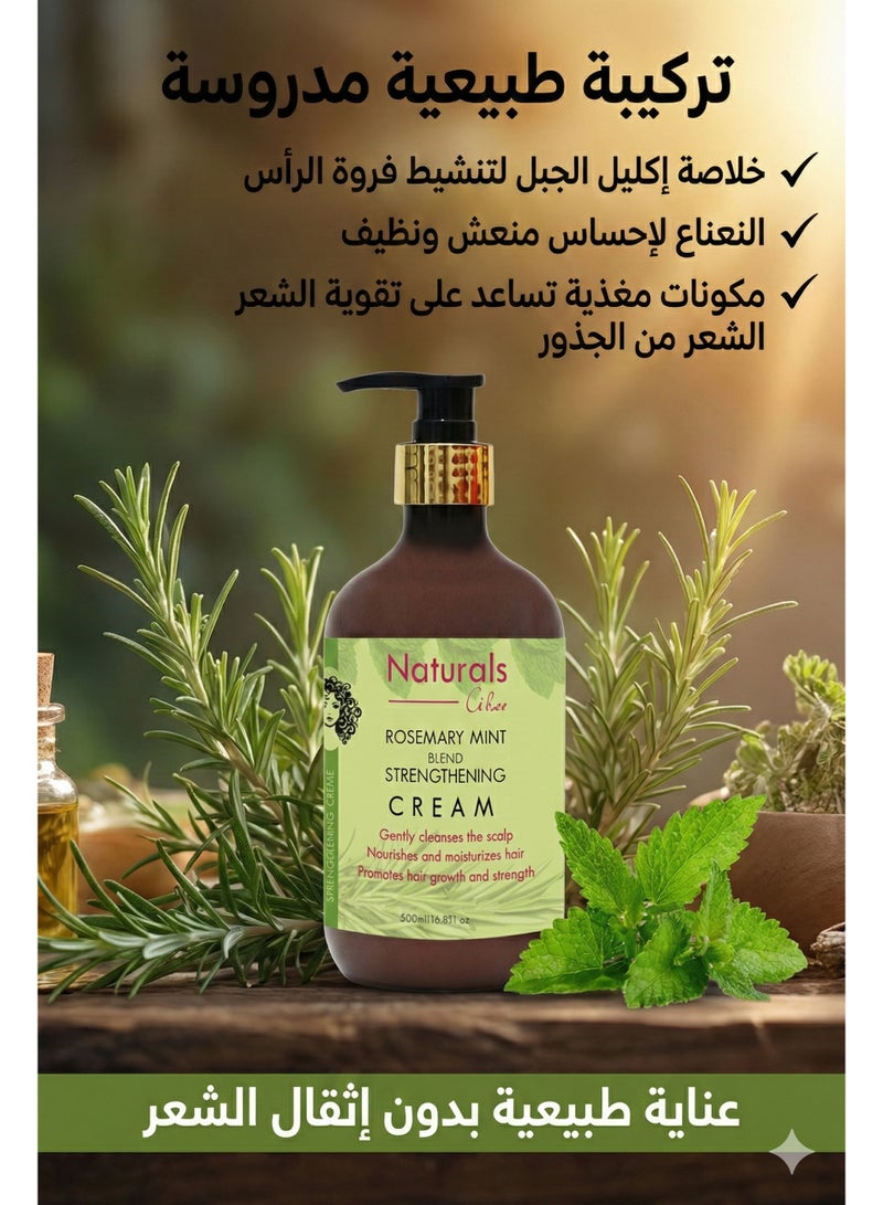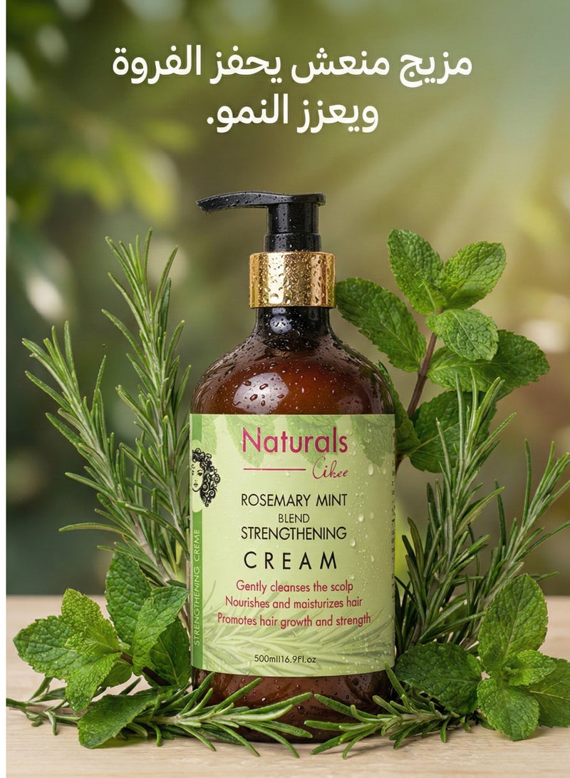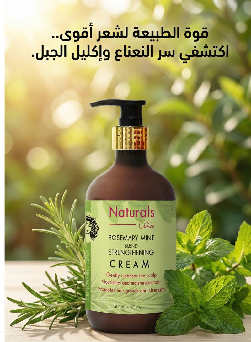 Naturals CiBee Rosemary Mint Strengthening Cream is a nourishing hair care formula enriched with Rosemary and Mint extracts, specially designed to gently cleanse the scalp while deeply moisturizing and strengthening the hair from roots to ends.