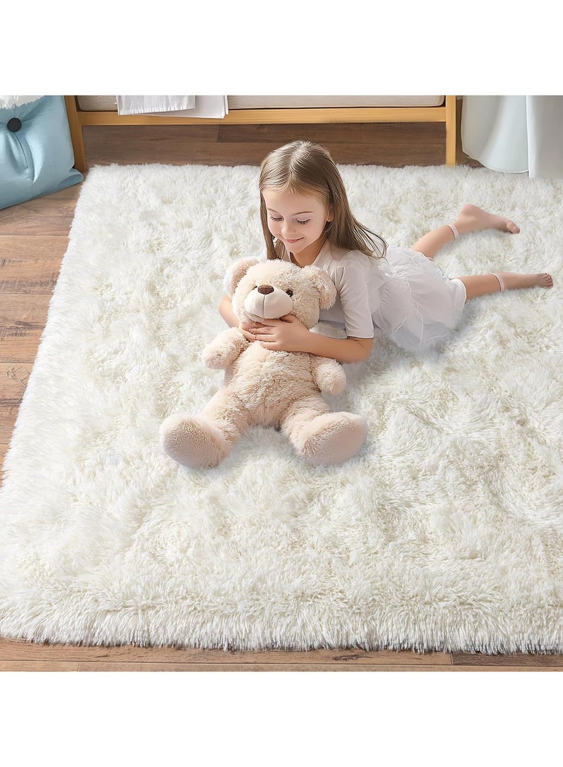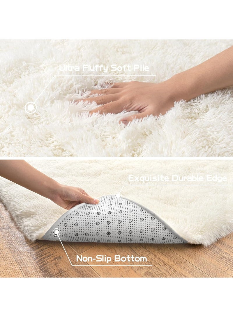 Rugs For Living Room,Soft Fluffy Area Rug Bedroom Living Room Shaggy Washable Anti-Skid Comfortable Large Rugs Indoor Modern Home Decor Floor Carpet (White)