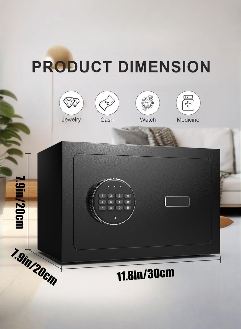 【Size and Package】Exterior Size: 20x30x20cm. (Please pay full attention to the dimension for this smart safe box before you buy it). This size is very suitable for use for hotel, home, office and jewelry safe. Package includes: 1*cabinet safe, 2*keys, 4 aa batteries,2*mounting screws, 1*user manual.