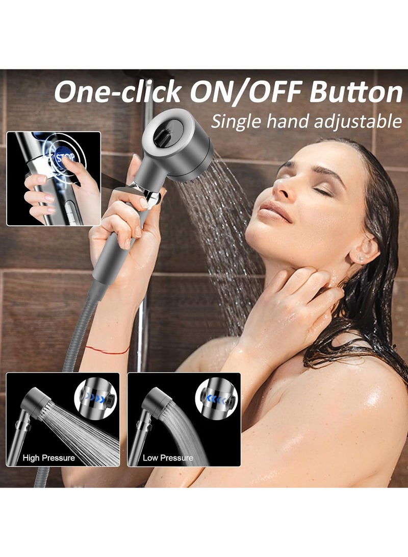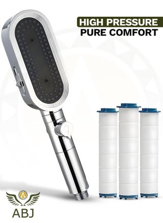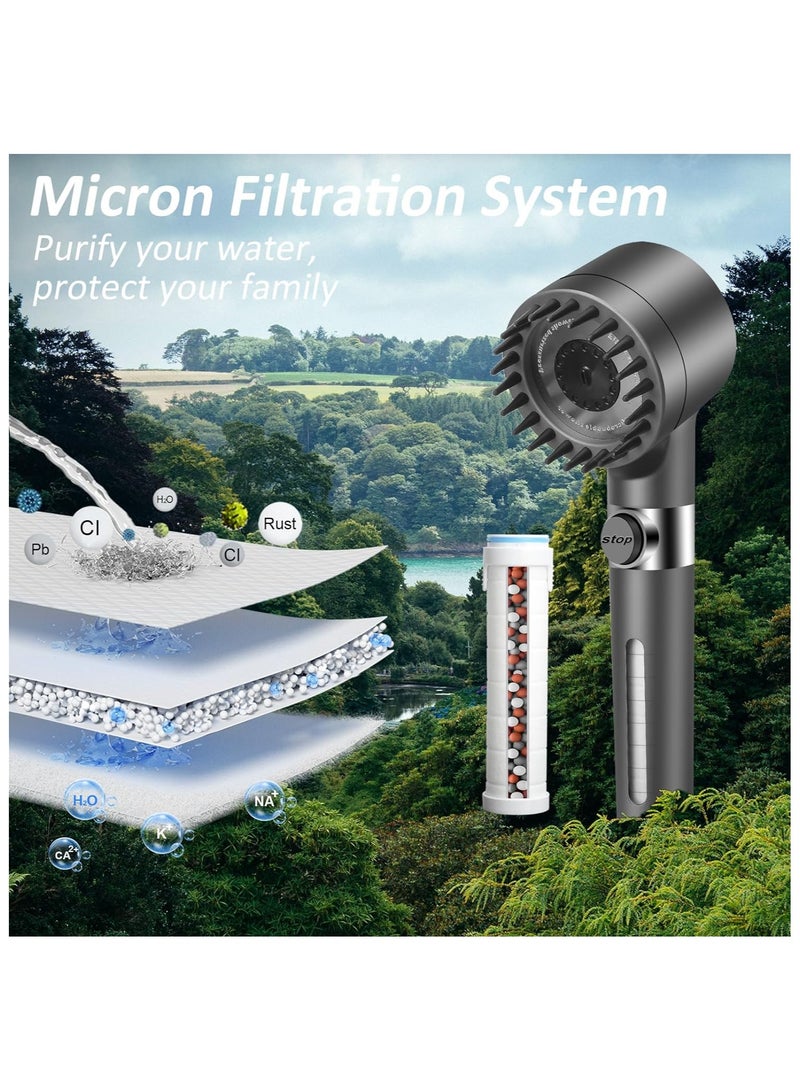 Introducing our innovative Shower Head with Handheld, designed for a high-pressure, high-flow experience even in low water pressure conditions. This handheld showerhead set offers four practical spray modes, including full-body rainfall, power-focused, relaxing massage, and water-saving pause mode. Crafted with superior materials, the chrome-plated ABS construction ensures durability, corrosion resistance, and a sleek appearance. The water-saving design incorporates micro-technology, featuring a unique internal structure with 150 powerful outlet holes that make water flow smaller and denser, saving up to 30% water while providing a gentle yet invigorating pressure. The detachable shower head includes a 60-inch hose and a filtration system with a PP filter for clean and safe water usage, reducing impurities and chlorine for smoother and healthier skin and hair. Experience a spa-level massage with 22 massage strips, and enjoy versatile usage with the handheld feature. The package includes all necessary accessories for easy installation, making it ideal for quick family use. This showerhead set not only enhances your shower experience but also contributes to a cleaner and more enjoyable bathroom environment.