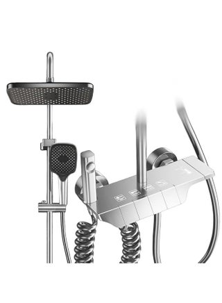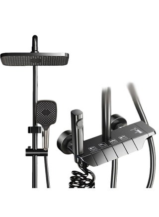 Shower System Thermostatic, 4-Function Piano Key Wall-Mounted Shower Set, with 12" Shower Head, 3 Function Hand Shower, Bath Mixers and Bidet Sprayers Brass Body(Gun Gray)