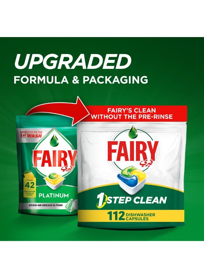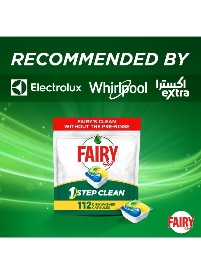 | What's In The Box | Fairy 1 Step Clean Automatic Dishwasher Tablets, Lemon Scent, 112 Tablets |