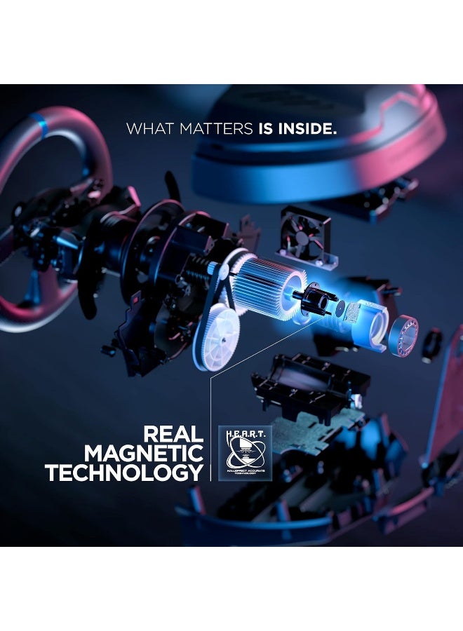 PROPRIETARY MAGNETIC TECHNOLOGY: Thrustmaster’s patented contactless H.E.A.R.T (HallEffect AccuRate Technology) system, without any potentiometers, allows for an unlimited product lifespan and optimal precision throughout gaming sessions: up to 16-bit resolution, with 65,536 values.