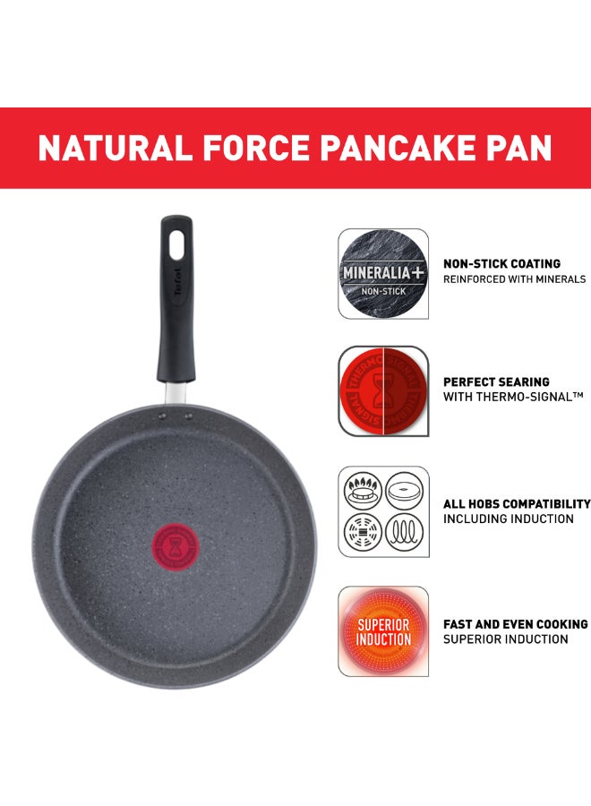 Discover the Tefal Natural Force Pancake Pan, part of the new must-have cookware collection for healthier cooking every day. Inspired by nature, Natural Force comes equipped with the new ultra-resistant Mineralia+ non-stick coating, combining minerals and impressive non-stick results, for low-fat cooking with performance that's built to last. On top its 100% recycled aluminum body* helps to reduce the environmental impact. Tefal’s latest innovations round off the package: Thermo-Signal™ for perfect searing and Thermo-Fusion+™ for fast and even cooking.