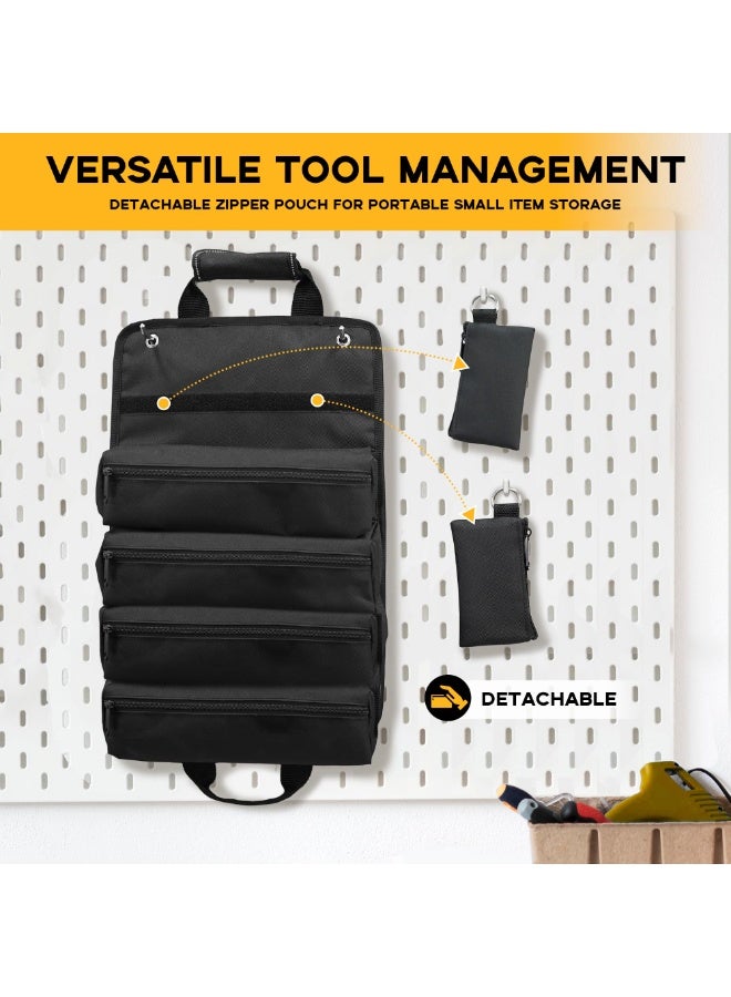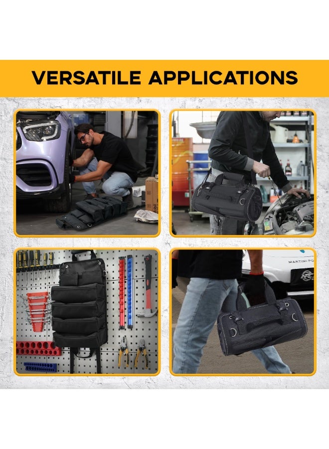 The roll-up tool bag adopts a flexible folding structure. When not in use, the tool bag can be easily rolled up, saving a lot of storage space. After rolling up, the tool bag becomes very compact and can be easily stored in a small storage cabinet, car trunk or backpack, or even hung on the wall or tool rack, maximizing the use of every inch of space.