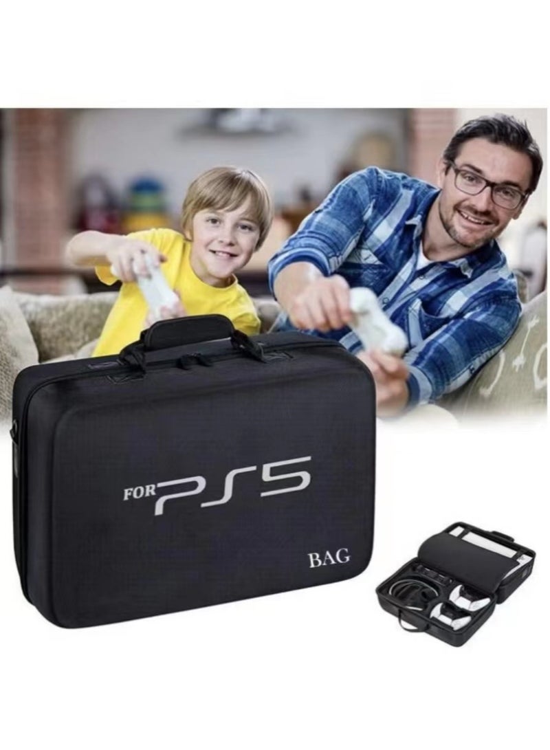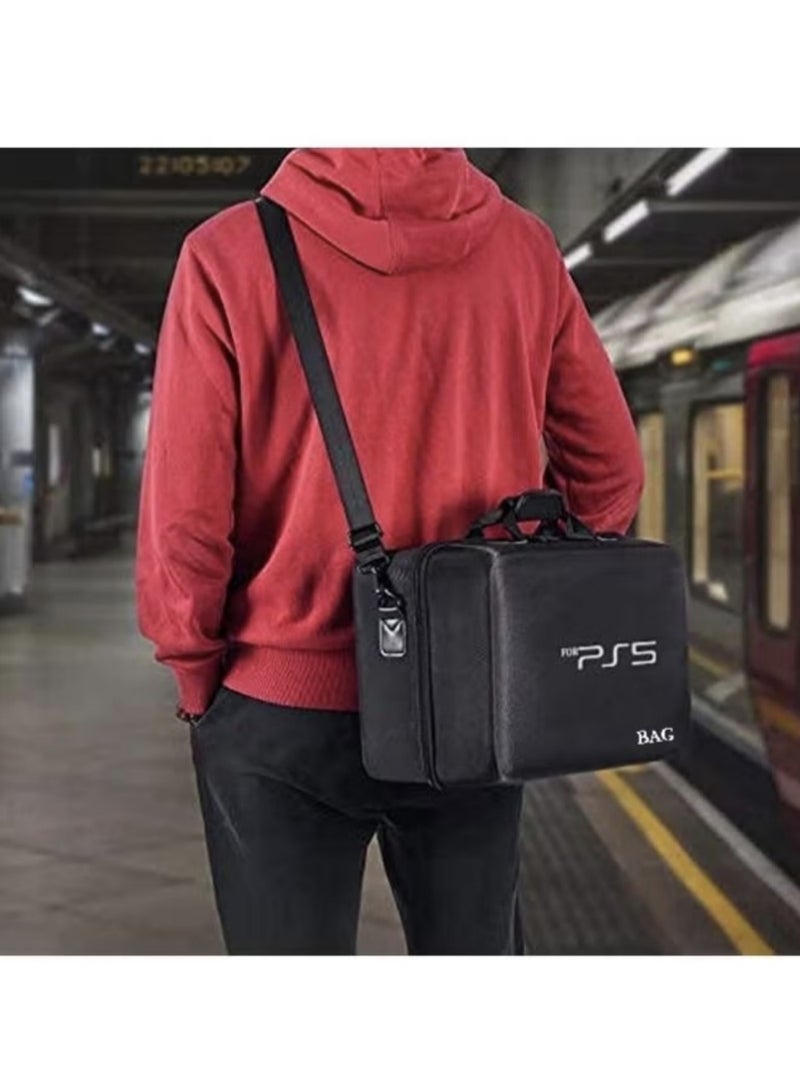 【Two-layer partition storage】-- The upper layer can store handles, charging cables and other small items, and the lower layer stores the console. 【Custom Made】-- This case is specially designed for Playstation 5, perfect fits your PS5 and other accessories. Protects your device from dust, scratches and shocks. 【Superior Materials】--Using the high quality materials: Hard EVA and excellent 1680D materials, this case is solid and strong, top quality build and not easily deformed. 【Multi-pocket design】-- For even more storage and customization, our PlayStation Travel Case features external pockets for smaller items like HDMI cables, power cables, and more gaming accessories. 【Secure with elastic straps】-- There are several elastic straps inside to fix the machine and accessories for easy carrying and storage. 【Travel Companion】-- Come with the handle and a shoulder strap, it’s a good helper on your trip with your playstation 5. You can safely take your game console and essential items everywhere with this case.