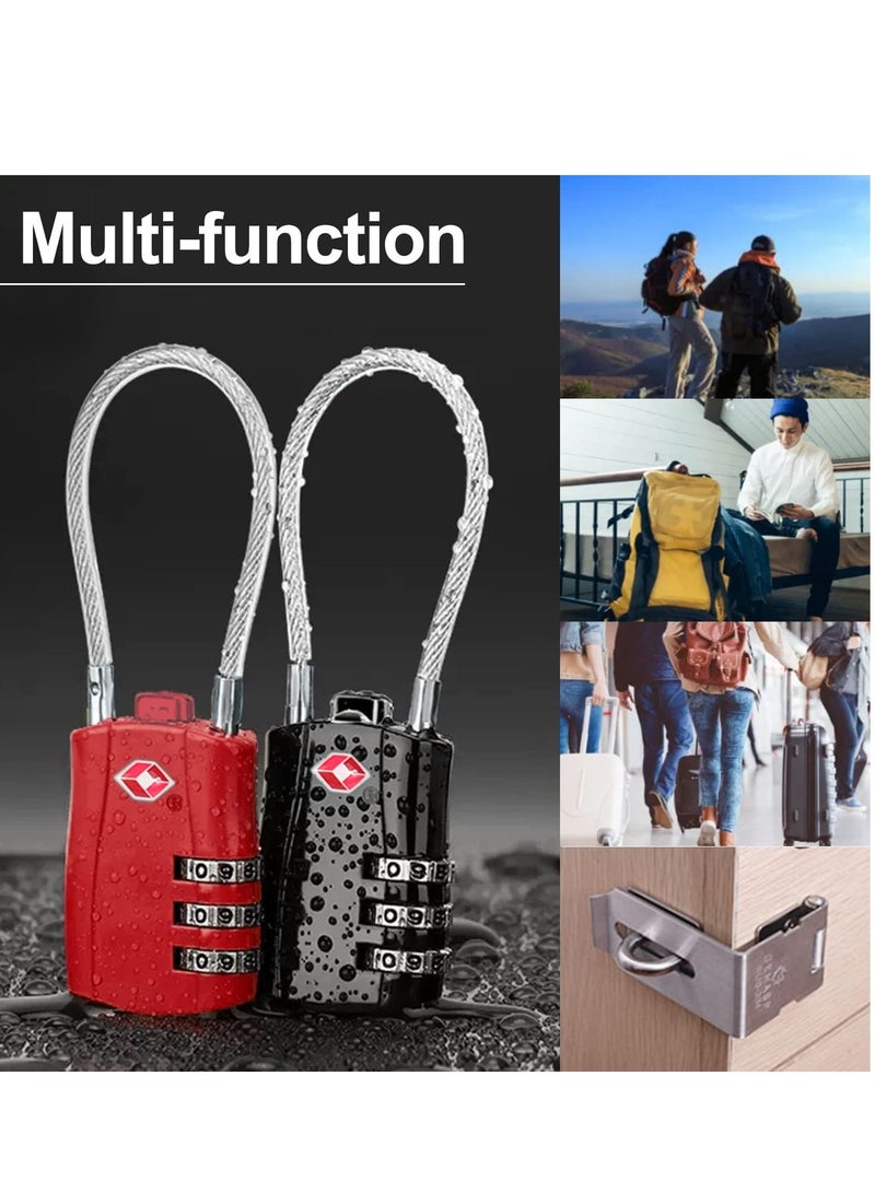 【High quality】The main body of each traval lock is crafted from high-strength zinc alloy, and the cable is made from cut-resistant steel. With this flexible construction, these locks are capable of withstanding rough handling and can easily fit through most luggage locks or zip-grips. They can be used for a variety of purposes, including on suitcases, backpacks, gym lockers, chests, gun cases, briefcases, cabinets, toolboxes, golf bags, and laptop bags.