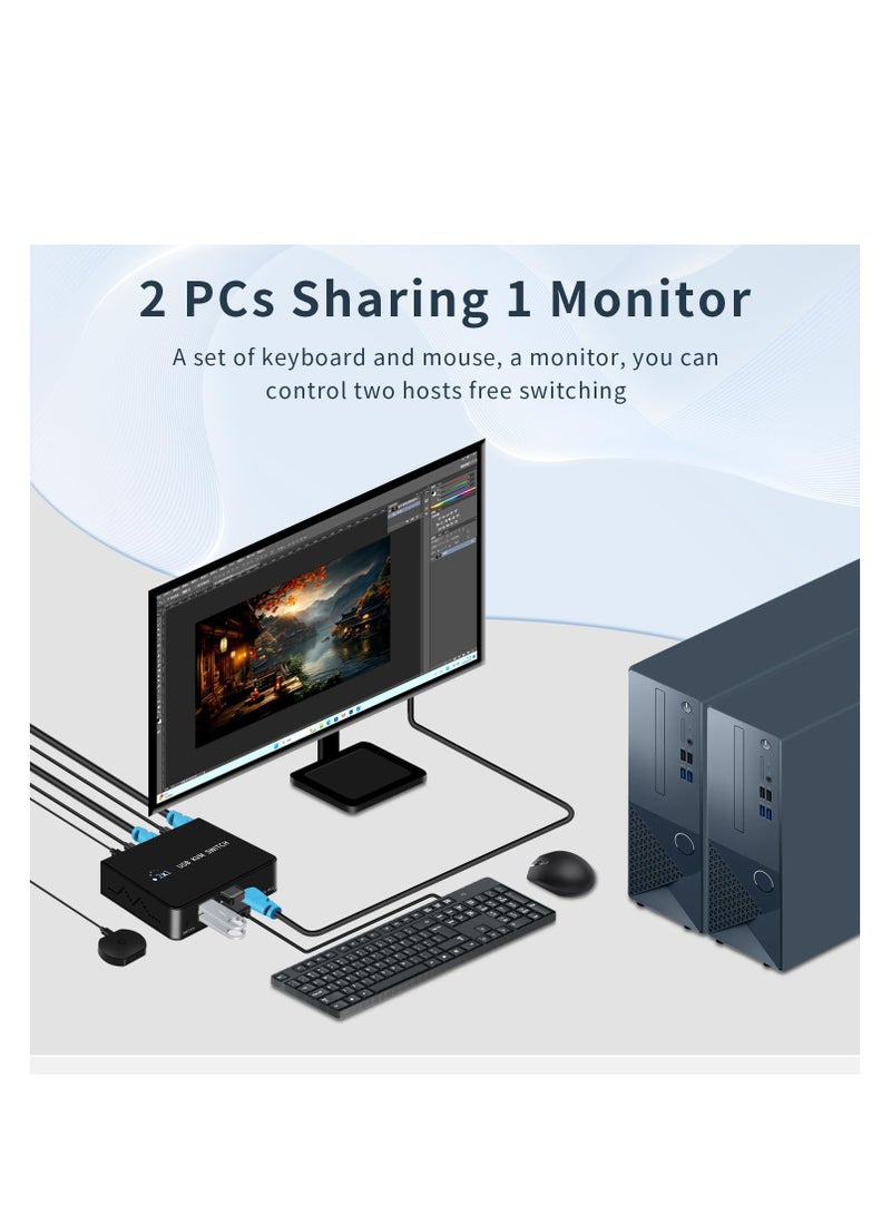 🔁 2-in-1 Output: Efficiently manage two hosts with a single monitor and a set of USB devices (mouse, keyboard, printer, USB flash drive, USB sound card, etc.) using this versatile switch. It requires no driver software and is easy to install.