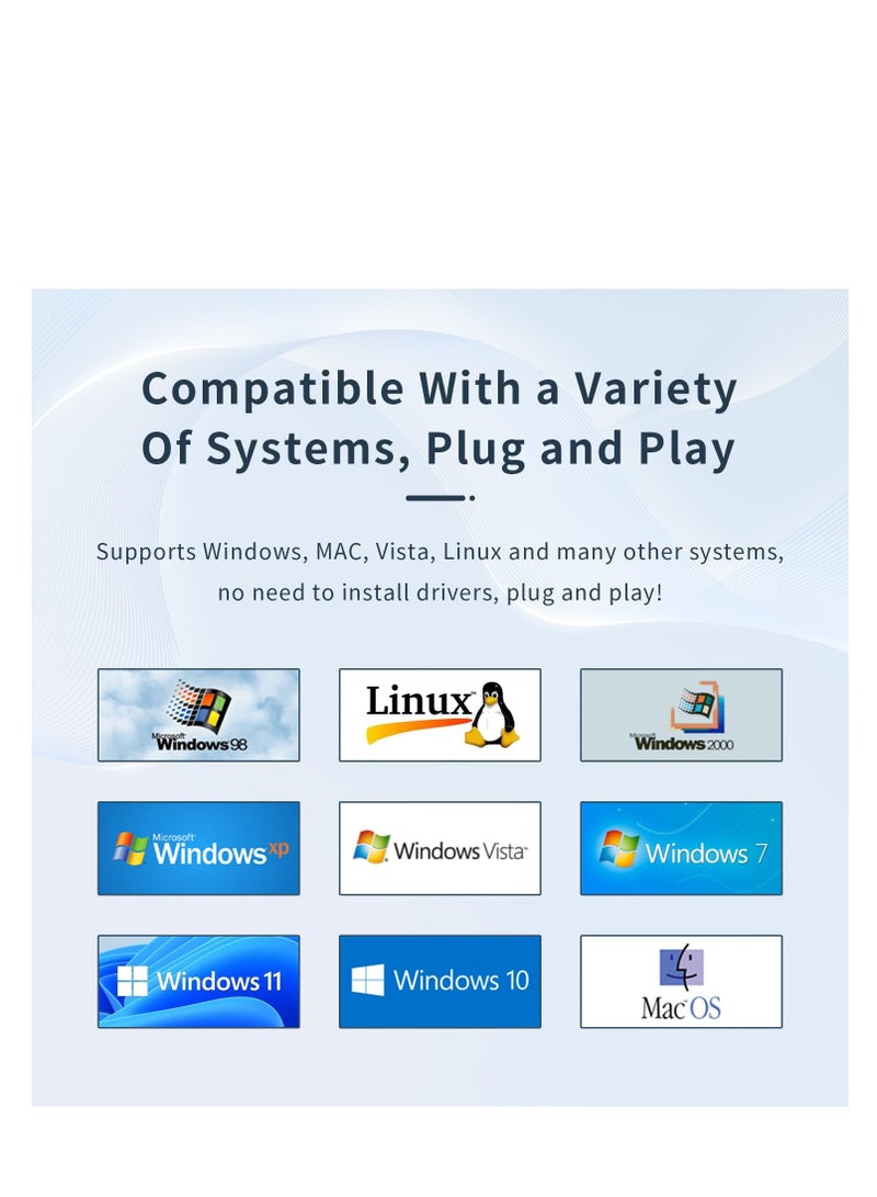 🎥 4K@60Hz & USB 2.0 Speed: Experience 4K@60Hz resolution along with support for lower resolutions. The USB 2.0 connection ensures compatibility with a range of devices, including wired and 2.4G wireless keyboards (except Bluetooth).