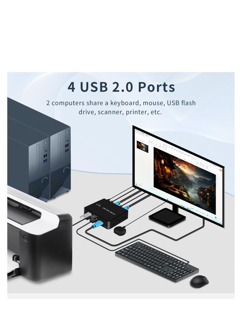 USB KVM Switch, 2 Computers Share 4 usb2.0 Devices, Keyboard Mouse Printer USB switcher,Supports Desktop Controller and Button switches, USB Switch Selector Compatible with Windows, Mac, Linux