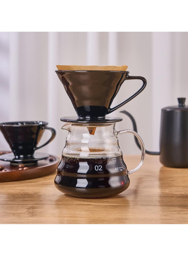 V60 Ceramic Dripper 1~4 Cup Made of High Fired Ceramic Material Pour Over Coffee Dripper/Coffee Maker, Ceramic Slow Brewing Accessories for Home, Cafe, Restaurants, Strong Flavor Brewer, Size 02 Black