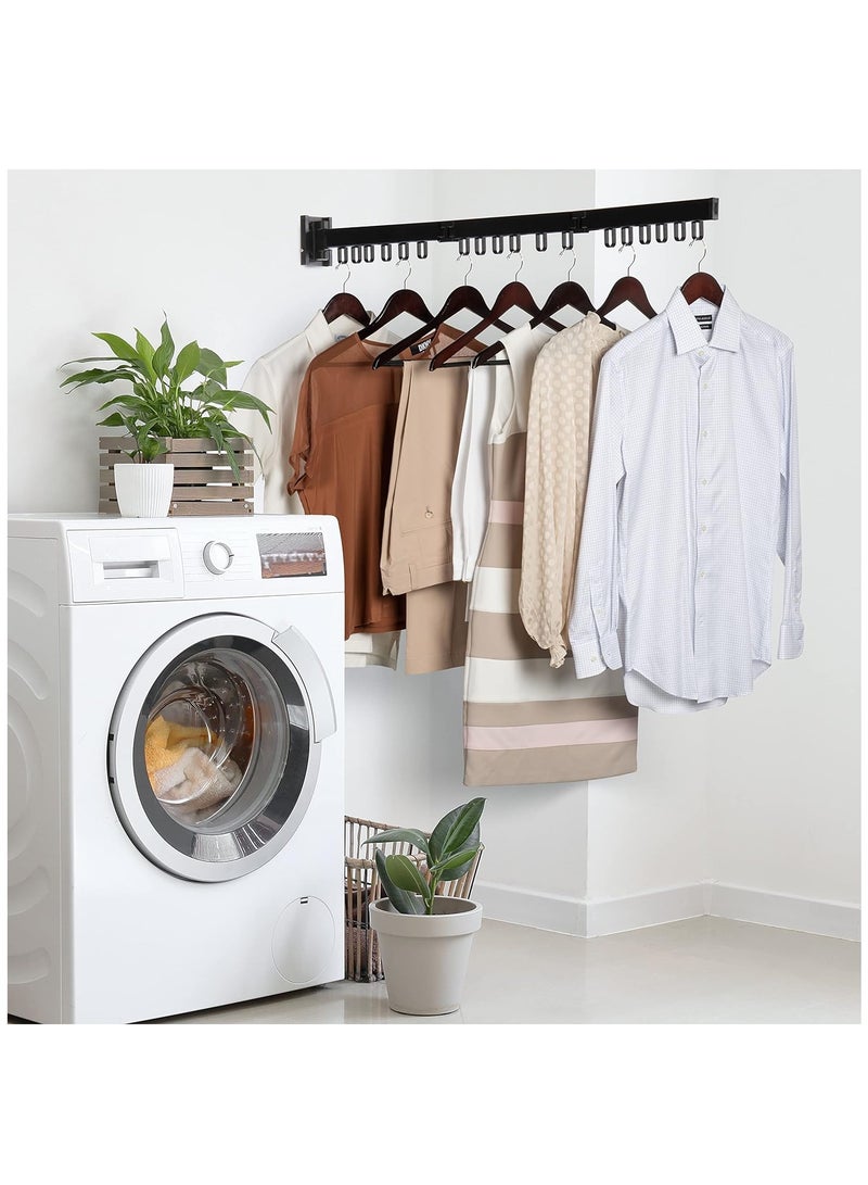 Wall Mounted Drying Rack, Foldable Clothes Hanger Rack with 18 Hooks and Towel Holder, Clothing Drying Rack for Balcony, Laundry, Bathroom (Black)
