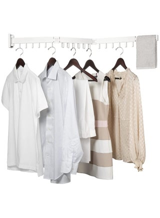 Space-Saving: This wall-mounted drying rack has a tri-fold design with a built-in retractable towel bar, which allows you to utilize the space to fold and unfold when in use, and fold on the wall when not in use, very space-saving