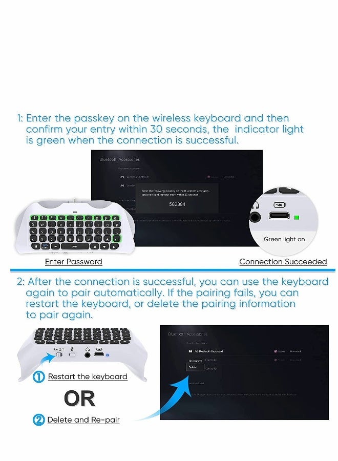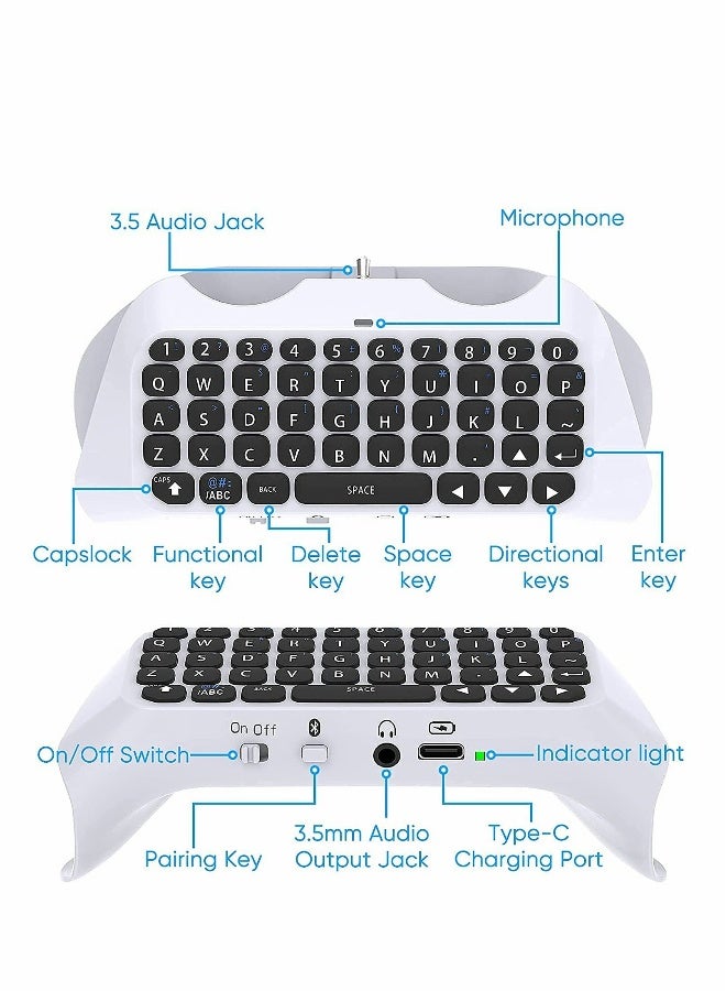 Wireless Keyboard for PS5 Controller, Bluetooth 3.0 Mini Chatpad Message Game Keyboard Keypad Built-in Speaker with 3.5mm Audio Jack for Messaging and Gaming Live Chat