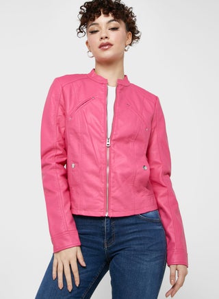 Update your casual outfit with a classic zip through jacket.
