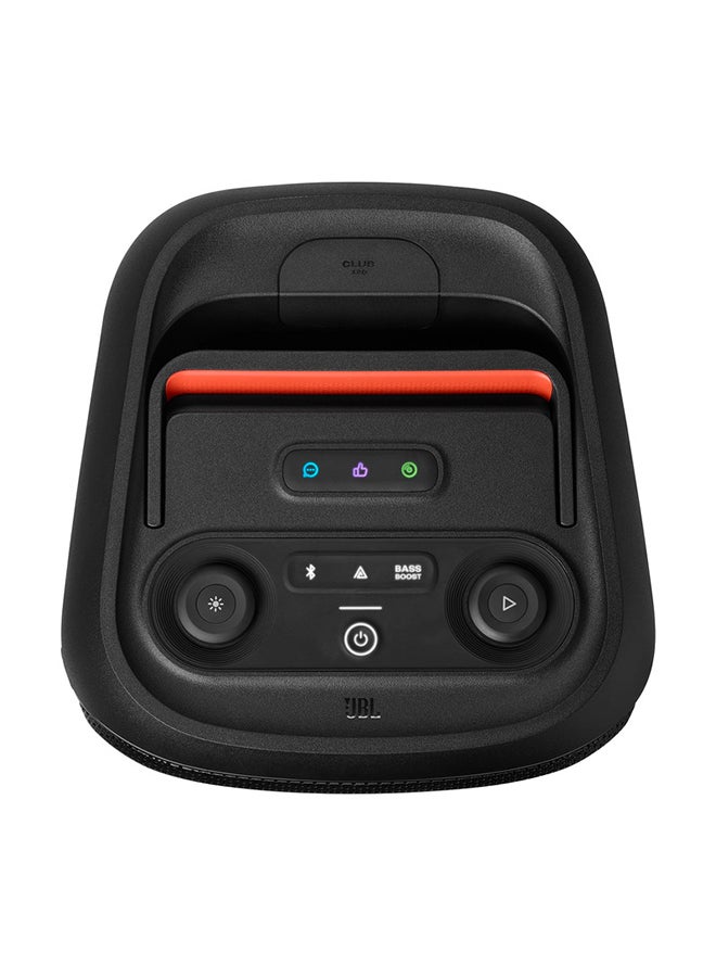 Pure party energy The JBL PartyBox Club 120 turns any space to party, and vibe. Powerful JBL Pro Sound fills the air while an entrancing lightshow of starry lights, cool light trails, and strobe effects syncs to your beat. Instantly pair any Bluetooth device and stream your favorite party playlist, or use the mic and guitar inputs to share your own sound. Either way, you can steer the party’s flow with fun interactive party effects using the JBL PartyBox app. A folding ergonomic handle makes the PartyBox Club 120 easy to take with you anywhere, and the splash-proof construction means it won’t be troubled by a little rain. It delivers up to 12 hours of playtime—and if the party’s still flowing by then, just swap out the replaceable battery and keep the music and lights going strong. For an even bigger time, stereo pair two JBL PartyBox Club 120s for a wider soundstage, or use the JBL PartyBox app to connect multiple JBL Auracast-enabled speakers wirelessly. Roll up to the party with the JBL PartyBox Club 120