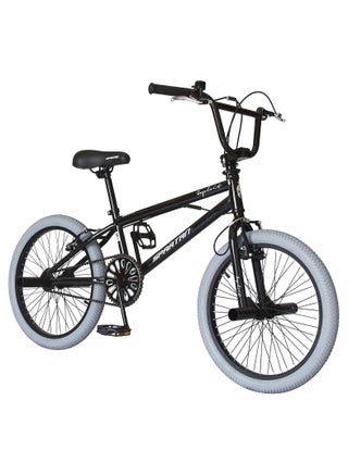 دراجة سبارتان 20" إكسبلويت BMX فري ستايل باللون الأسود اللامع مثالية للأولاد من 7 إلى 12 سنة الذين يحبون أداء الحيل، الدورانات، والقفزات في الحدائق أو على الشوارع.