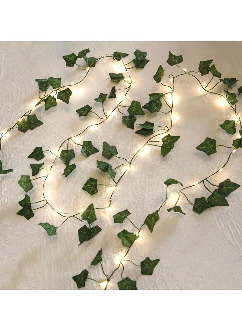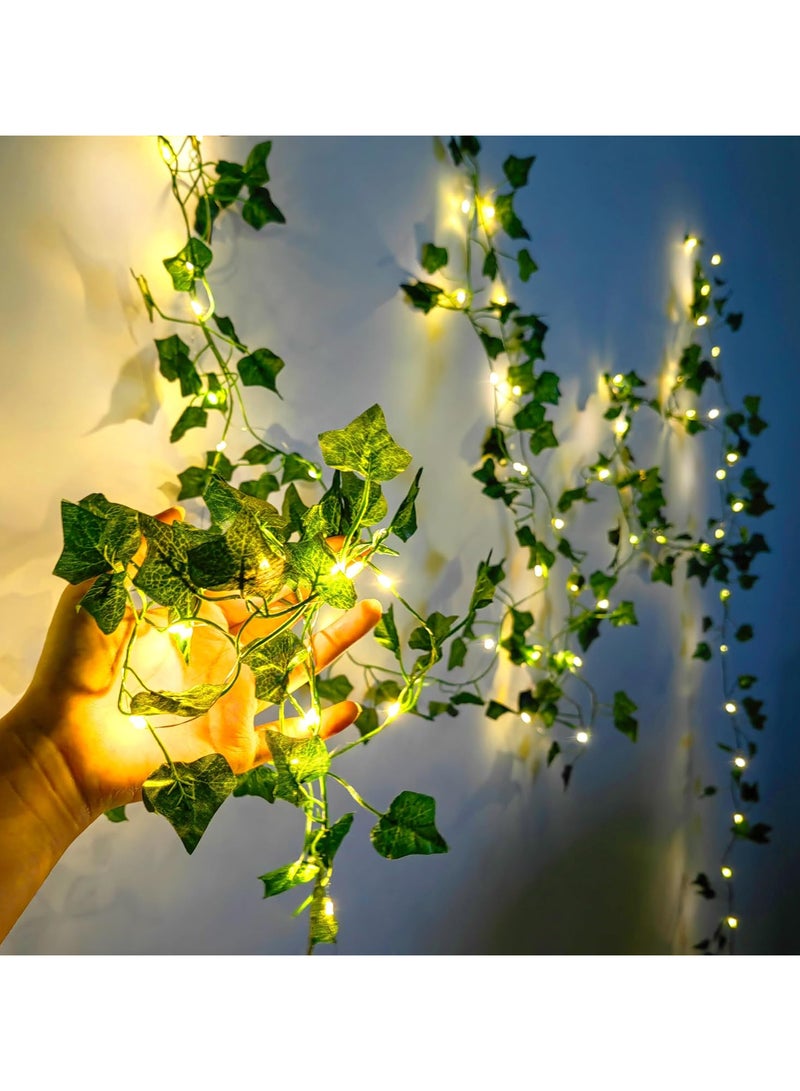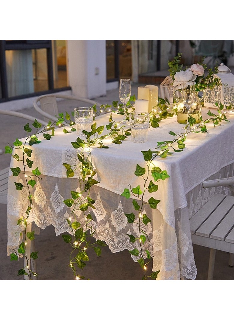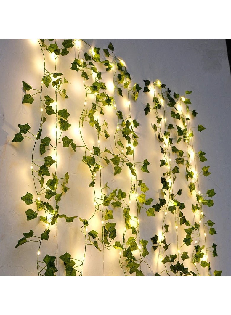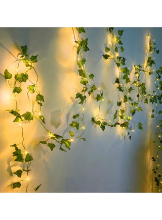 سلسلة أضواء بطول مترين - أضواء من نبات اللبلاب الاصطناعي باللون الأبيض الدافئ لغرفة النوم وأضواء من الكروم لتزيين الجدران والغرف والنوافذ وحفلات الزفاف والحدائق الداخلية