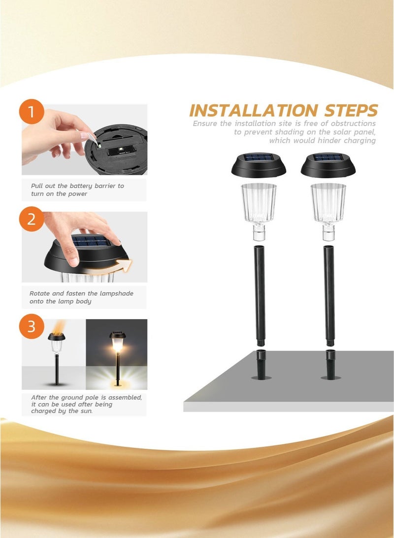 يضمن تصميمها المقاوم للماء والظروف الجوية أداءً طويل الأمد في المطر والحرارة والغبار، مما يجعلها مناسبة للاستخدام الخارجي على مدار العام. بفضل تركيبها البسيط باستخدام وتد أرضي، لا حاجة لأي أدوات أو أسلاك - فقط ضعها في التربة واستمتع بالإضاءة الفورية.