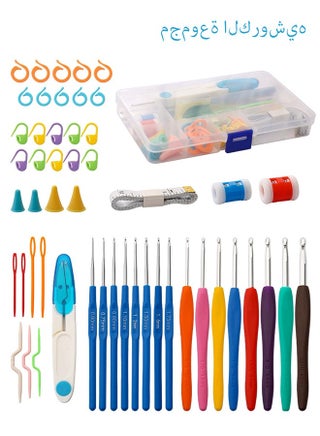 مجموعة من 53 خطاف كروشيه، مع حقيبة حمل وإبر وعلامات غرز ملونة وشريط قياس مجموعة خطاف كروشيه للمبتدئين لفن الكروشيه والحرف اليدوية، متعددة الألوان، مع حقيبة شفافة