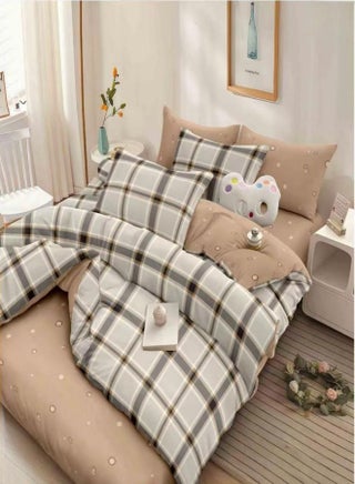يتضمن طقم كينغ المكون من 6 قطع: 1 غطاء لحاف - 220*240 سم. 1 ملاءة مشدودة - 200*200 سم + 30 سم. 4 أغطية وسائد - 50*75 سم. يتضمن طقم كوين/دبل المكون من 6 قطع: 1 غطاء لحاف - 200*230 سم. 1 ملاءة مسطحة - 230*250 سم. 4 أغطية وسائد - 50*75 سم. يتضمن طقم سنجل المكون من 4 قطع: 1 غطاء لحاف - 160*210 سم. 1 ملاءة مشدودة - 100*200 سم + 30 سم. 2 أغطية وسائد - 50*75 سم. قماش ناعم: 80% قطن، 20% بوليستر. 91 غرام لكل متر مربع. يرجى ملاحظة: الغطاء اللحاف (المخدة) غير مشمول. يرجى ملاحظة: الغطاء اللحاف (المخدة) غير مشمول. هذه الأغطية عالية الجودة، مع نسيج مجعد خفيف يجمع بين الأناقة ومقاومة التشوه والتكتل. إنها مثالية لأي غرفة نوم، تكمل أي ديكور، وقماشها الخفيف يجعلها مثالية لجميع الفصول. ليست مريحة وقابلة للتنفس فحسب، بل هي أيضًا ناعمة جدًا عند اللمس، مما يضمن نومًا هادئًا على مدار السنة. تعليمات العناية: قابلة للغسل في الغسالة بالماء البارد وتجفيفها في المجفف على درجة حرارة منخفضة، لا تستخدم المبيض. يُوصى بقلب طقم الأغطية عند الغسل.