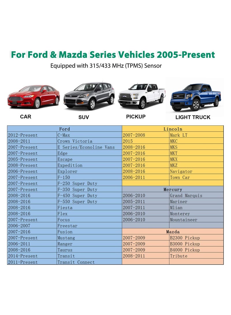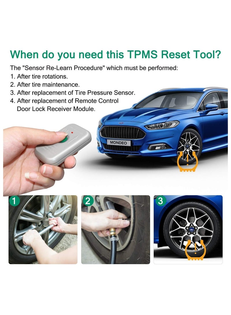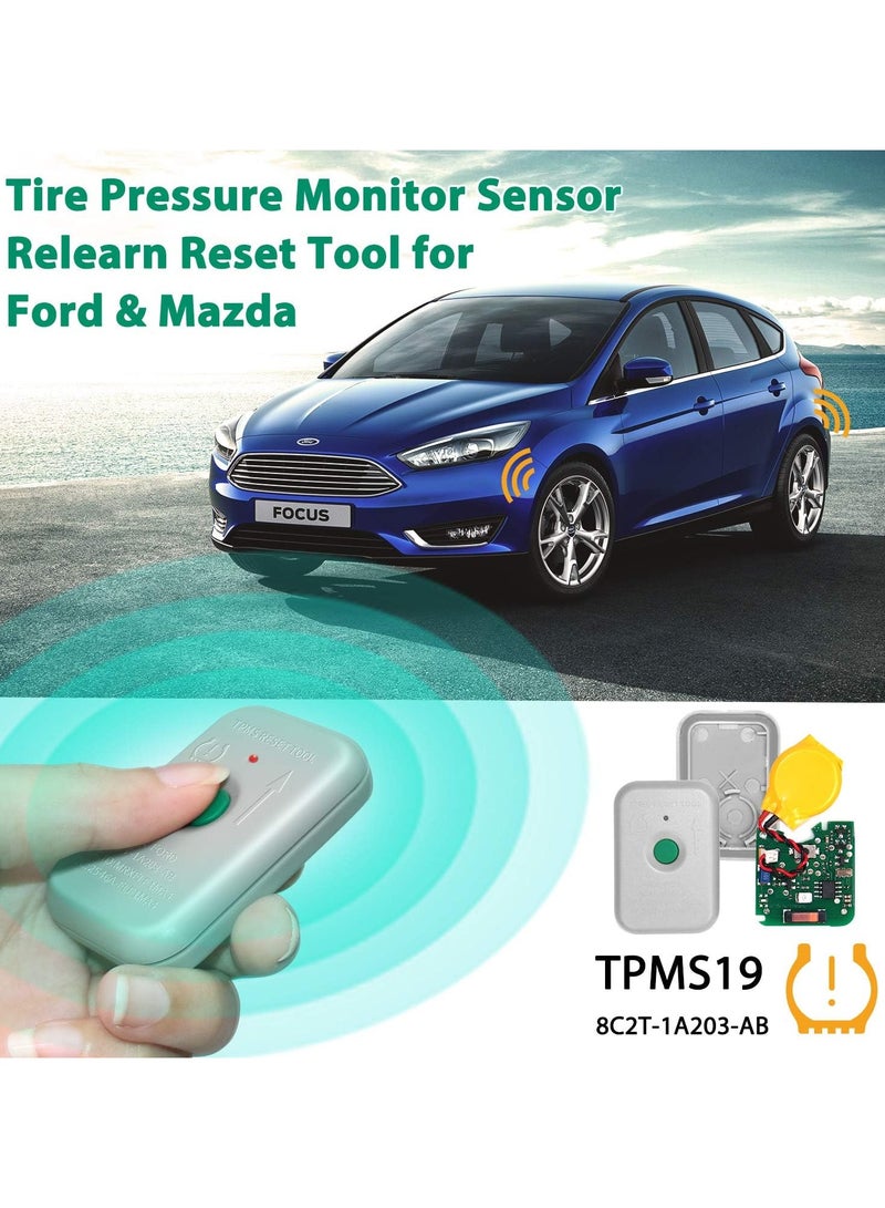 【CUSTOMIZED for FORD MAZDA】This TPMS Sensor Training Tool is customized for all Ford Lincoln Mercury, Mazda vehicles that has a Tire Pressure Sensor. Train the TPMS sensors and activate Tire Pressure Programming on new vehicles or after a tire rotation 【REPLACEMENT for P/N】8C2Z-1A203-A,8C2Z1A203A,8C2T-1A203-AB,8C2Z1A203AB,TPMS19(If your sensor is not original to your car, please confirm the sensor model before purchasing. This product does not have the function of programming the sensor, it can only activate the sensor. If you have just replaced a new sensor, please program the sensor before using this product to activate it.) 【ESSENTIAL TRIANING TOOL】TPMS19 is a essential tool of replacement tire pressure sensor, tire pressure alarm remove tires. Perfect to monitor tire pressure, training sensors of your cars so the TPMS warning light will not illuminate 【EASY to USE】Super mini TPMS activation tool with ease, faster operation, activates the individual TPMS sensors by pressing one button, Easy installation.This product only activates the tire pressure sensor. It cannot be used to program the sensor. If you have any questions about how this product works, please contact our customer service team 【PREMIUM QUALITY】 Made of High-quality material for long-lasting durability, battery life up to 5 years with normal use. Professional Support CE and FCC approved
