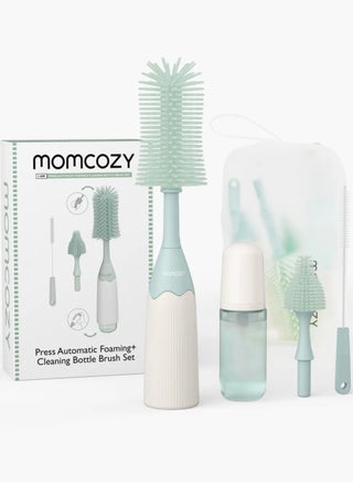 Momcozy Bottle Brush has an innovative push-press structure that solves the problem of silicone bottle brushes being difficult to foam. Soft silicone bristles, 360° comprehensive cleaning, and dense foam for superior cleaning performance. Crafted from food-grade silicone, our bottle brush set is BPA, PVC, and phthalate-free. Detachable and compact, comes with a convenient carrying pouch.