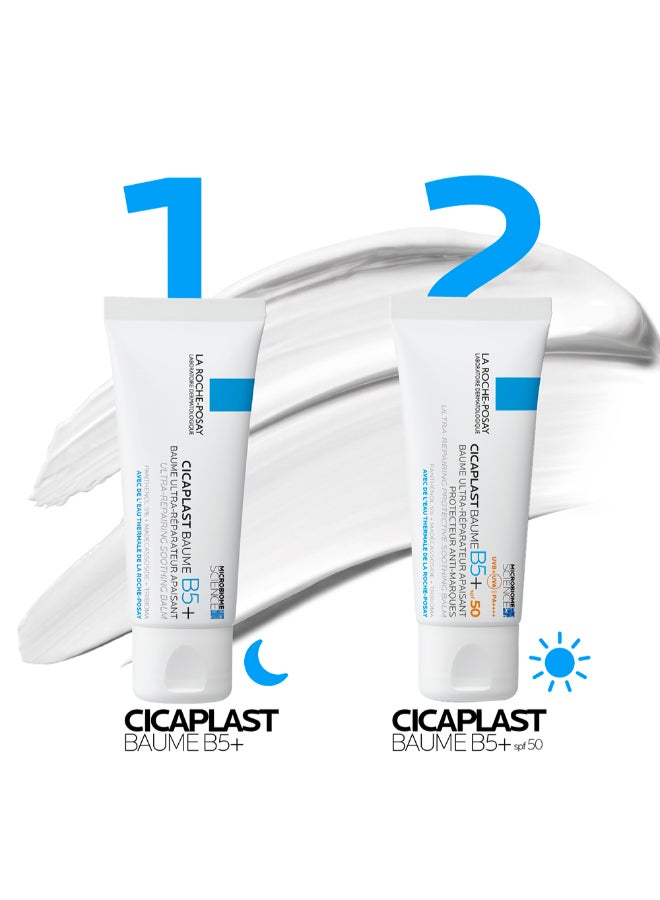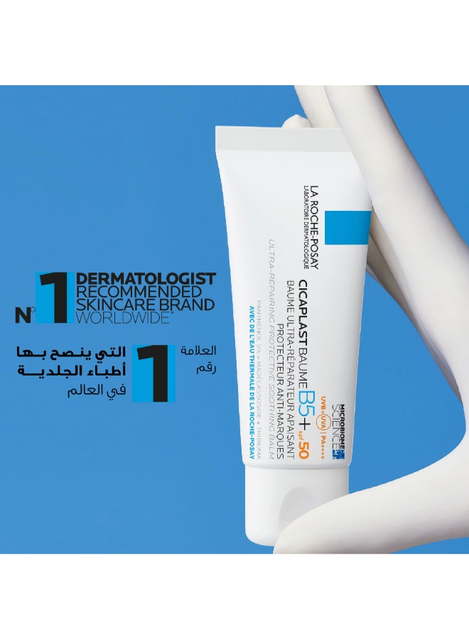 La Roche-Posay Cicaplast Baume B5+ SPF 50 is a multi-purpose soothing balm that provides immediate and long-lasting relief for dry, irritated, and sun-exposed skin. This unique formula combines the repairing power of Cicaplast Balm B5 with broad spectrum SPF 50 protection, helping to protect your skin from the damaging effects of the sun while simultaneously hydrating and soothing dry, cracked, chapped, or chafed skin. Experience all-day hydration and a reduction in the risk of skin cancer and premature aging caused by the sun when used as directed with other sun protection measures. This fragrance-free balm is suitable for sensitive skin and can be used on the face and body