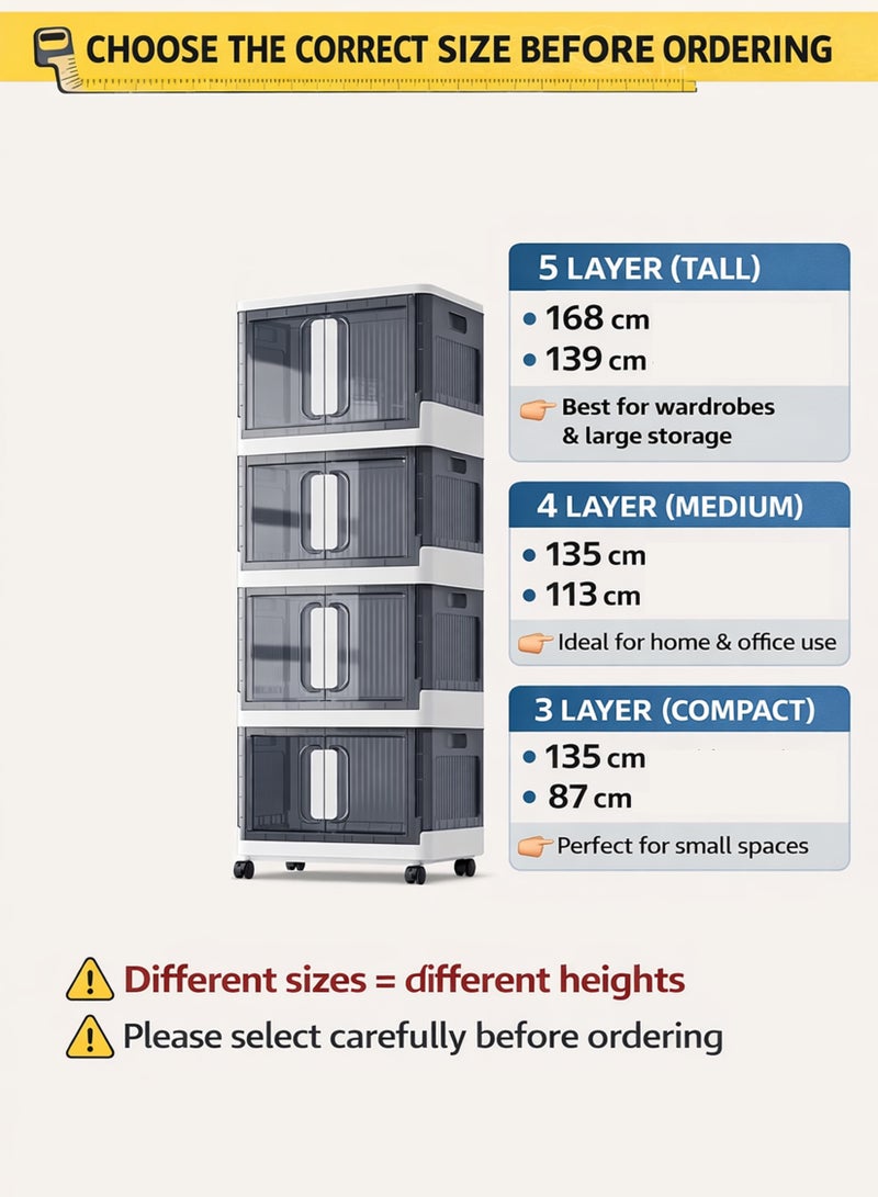 3 طبقات (50x32x87 سم): الحجم الأكثر إحكامًا، مثالي للمساحات الضيقة والاستخدام المحمول.