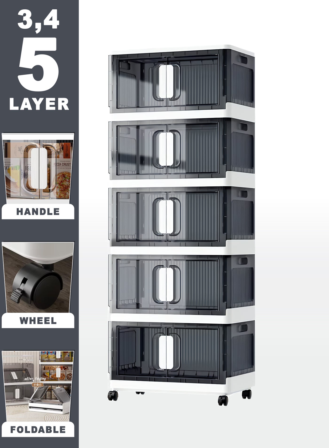 4 طبقات (50x32x113 سم): خيار متوسط الحجم يوفر التوازن بين الارتفاع والاكتناز.
