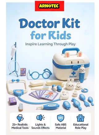 ألهِم خيال صغيرك وحبه لمساعدة الآخرين مع طقم الطبيب وطب الأسنان المكون من 23 قطعة للأطفال! يجمع هذا الطقم التفاعلي بين متعة كونك طبيبًا وطب أسنان، مما يساعد الأطفال على التعرف على الأدوات الطبية في بيئة آمنة ومرحة.