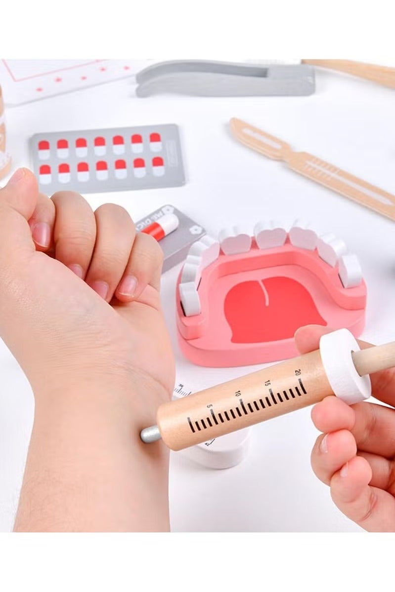 يتميز بمجموعة واسعة من الملحقات الواقعية - بما في ذلك سماعة طبية، ميزان حرارة، حقنة، مرآة أسنان، فرشاة أسنان، بطاقة أشعة سينية، وحتى نموذج فم بأسنان قابلة للإزالة - يتيح هذا الطقم لطفلك استكشاف الرعاية الصحية من خلال اللعب التفاعلي.
