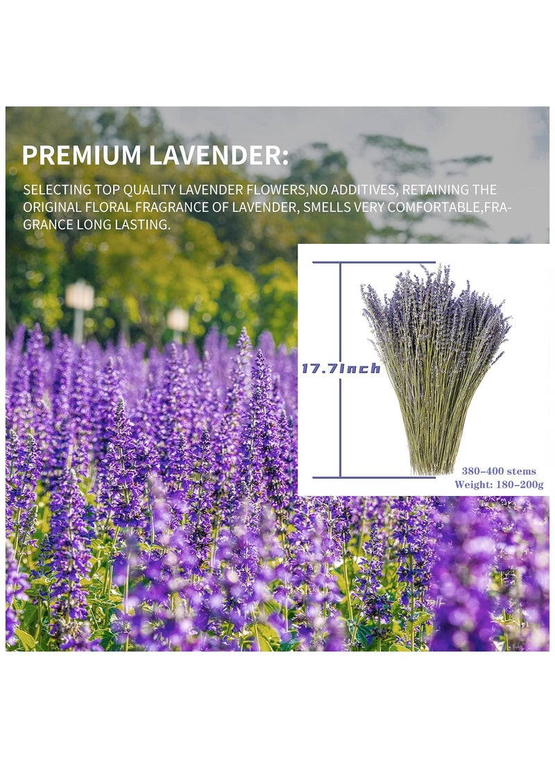 مشاريع DIY من اللافندر: مثالية لตกيب المحلات، تزيين صناديق الهدايا، وصنع شموع اللافندر، الزيوت العطرية، الصابون، الوسائد. الحزمة تحتوي على 380-400 ساق. الطول 17.7 بوصة، الوزن: 180-200 جرام. اللافندر يرمز إلى النقاء، الجمال، الحب والرومانسية. أزهار اللافندر المجففة هي مواد مثالية لمجموعة متنوعة من المشاريع DIY.