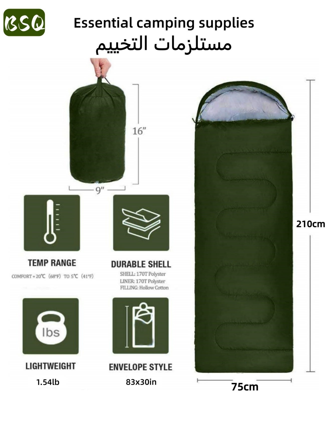 مصممة لتحمل درجات حرارة تتراوح بين 5 و25 درجة مئوية، وتبقيك دافئًا حتى في درجات حرارة منخفضة تصل إلى 40 درجة فهرنهايت (حوالي 20 درجة مئوية).تتراوح درجة حرارتها المريحة بين 17 و24 درجة مئوية.إنها مثالية لحمل حقائب الظهر، والتخييم، والمشي لمسافات طويلة، وحتى في المنزل.إنها حقيبة النوم المثالية للمغامرات.