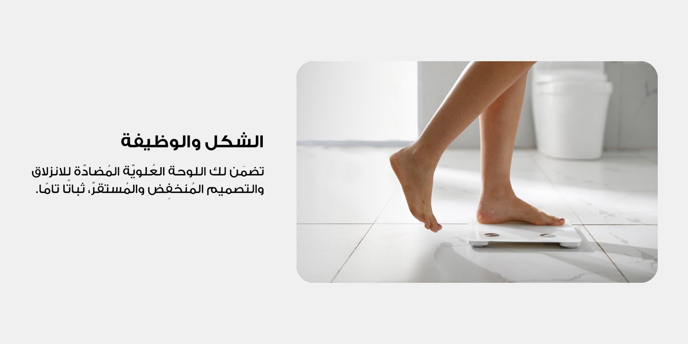 تضمن اللوحة العلوية المضادة للانزلاق والتصميم المنخفض والمتوازن الاستقرار عند الوقوف على الميزان