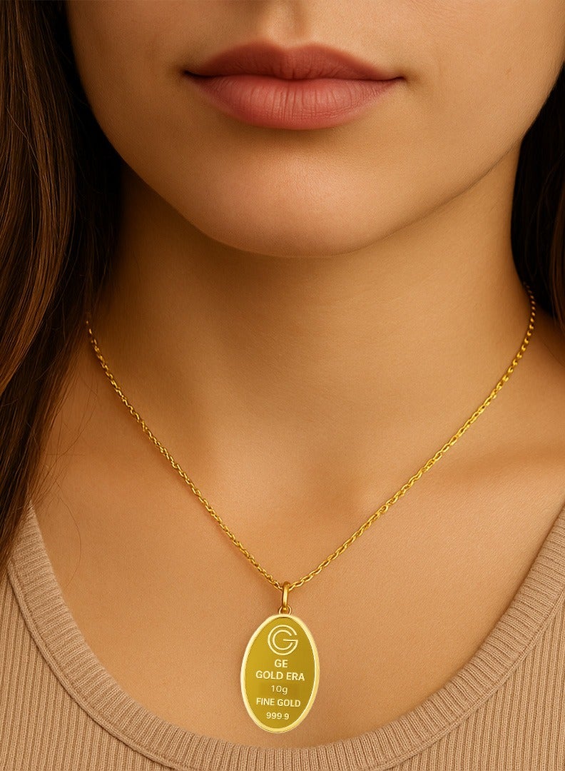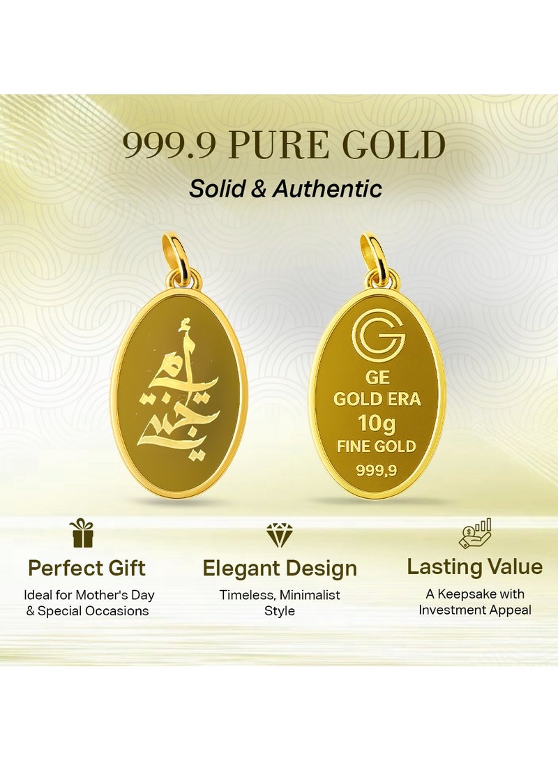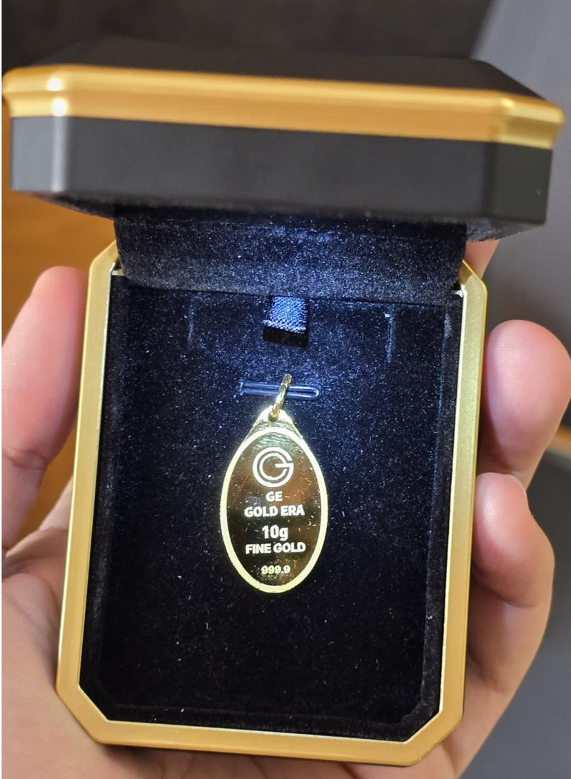 سبائك الذهب 10 جرام 24 قيراط مُصنعة ومُنتجة محلياً في الإمارات العربية المتحدة، تأتي مع رمز QR فريد لحفظ التفاصيل الشخصية للعميل. السبيكة محمية بغطاء مختوم.