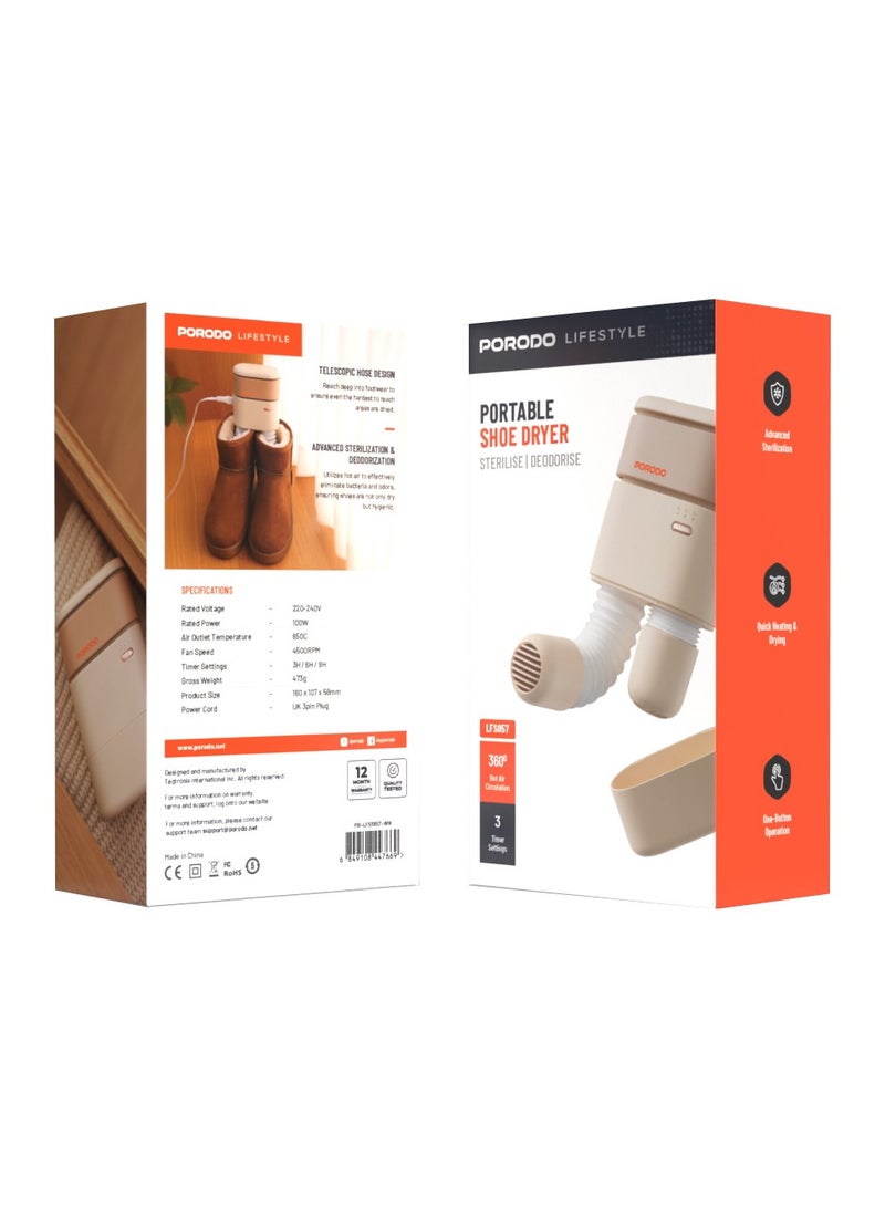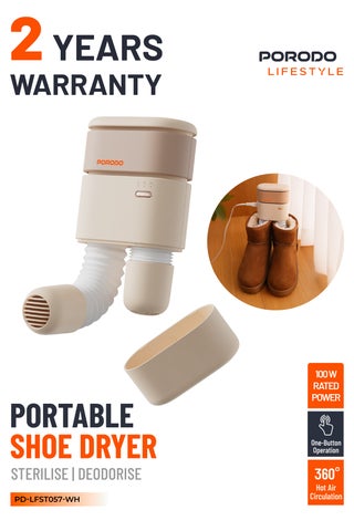 مجفف الأحذية بالهواء الساخن من Porodo Lifestyle هو حل مبتكر وفعال للحفاظ على الأحذية الجافة والمريحة. باستخدام نظام دوران الهواء الساخن بزاوية 360 درجة، يضمن مجفف الأحذية هذا التجفيف الكامل والمتساوي، ويزيل الرطوبة من داخل الأحذية بشكل فعال. مع ثلاثة إعدادات مؤقتة قابلة للتعديل، يمكن للمستخدمين تخصيص عملية التجفيف لتناسب أنواع الأحذية المختلفة واحتياجات التجفيف، مما يوفر المرونة والراحة في التشغيل.