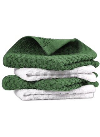 عبوة قيمة: مجموعة من أربع أقمشة أطباق، أقمشة أطباق قطنية مغزولة حلقيًا بنسبة 100% هي قيمة ممتازة لجميع احتياجات التنظيف في البار والمطبخ والمنزل دون التضحية بالجودة والمتانة.