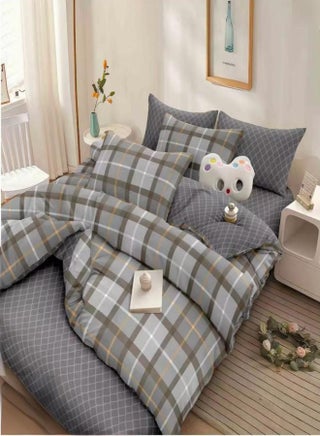 "King size 6 pcs set includes: 1 Duvet cover - 220*240 cm. 1 Fitted sheet - 200*200 cm+30 cm. 4 Pillow cases - 50*75.cm. Queen/Double size 6 pcs set includes: 1 Duvet cover - 200*230 cm. 1 Flat sheet - 230*250 cm. 4 Pillow cases - 50*75 cm Single size 4 pcs set includes: 1 Duvet cover - 160*210 cm. 1 Fitted sheet - 100*200 cm+30 cm. 2 Pillow cases - 50*75 cm. Soft Fabric: Cotton 80%, polyester 20%. 91 GSM PLEASE NOTE: DUVET(COMFORTER) IS NOT INCLUDED PLEASE NOTE: DUVET(COMFORTER) IS NOT INCLUDED. This bedding is of high-quality, with a subtle wrinkled texture that is both chic and resistant to deformation and pilling. It's perfect for any bedroom, complementing any decor, and its lightweight fabric makes it ideal for all seasons. Not only is it comfortable and breathable, but it's also super-soft to the touch, ensuring a peaceful slumber all year round. Care Instruction: Machine washable in cold water and tumble dry at low temperature, do not bleach. it is recommended that you turn the bedding set over when washing."